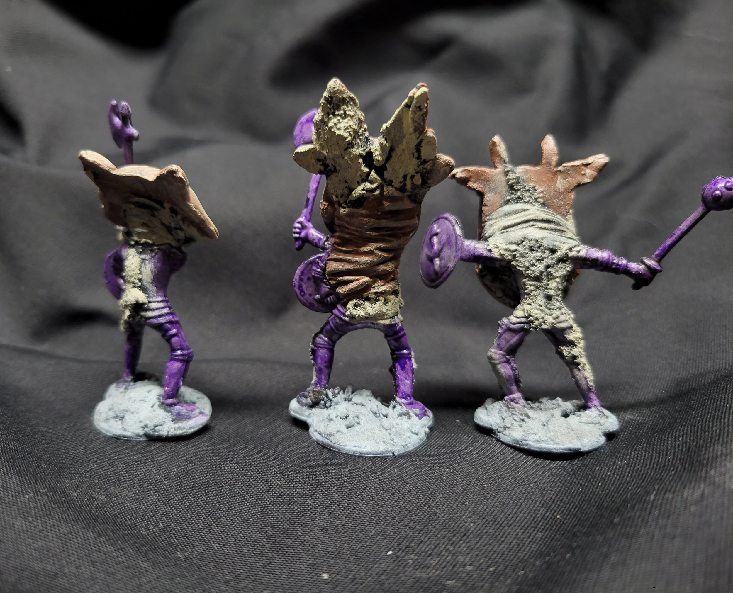 They got attached to bases, base coated in black matte paint, dry brushed hastily, and wash was used on the knightly bits. I made the two factions easily recognizable as green and purple, so they would stand out from each other on the battlefield.