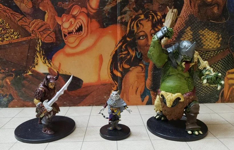 The Puldiver’s Delvers were born when I ran into a local game store that had loose miniatures for sale. Amid the glass cases a Rakshasa, a large troll, and an oni stared up at me and I knew I needed to pick them up. As a drove home I came up with the idea for the Delvers, set their personalities within my mind, and came up with the first adventure for them. Luckily, I had some stand in miniatures for their human forms, which became all to important before they transformed.